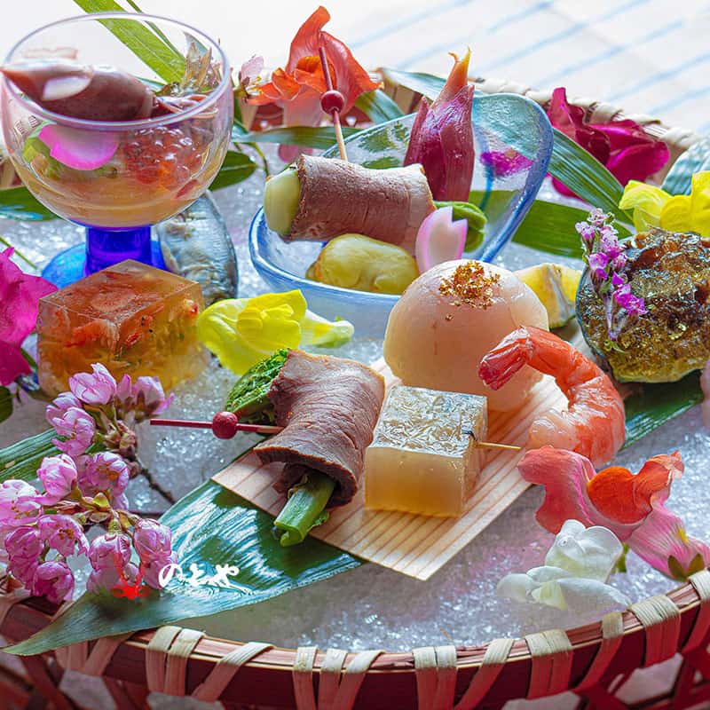 北陸を愛し、石川を愛し、金沢を愛し、粟津温泉を愛し、日本海を愛する職人が金沢のじわもんを厳選し、金沢ならではの四季のお料理を楽しんでいただけます。